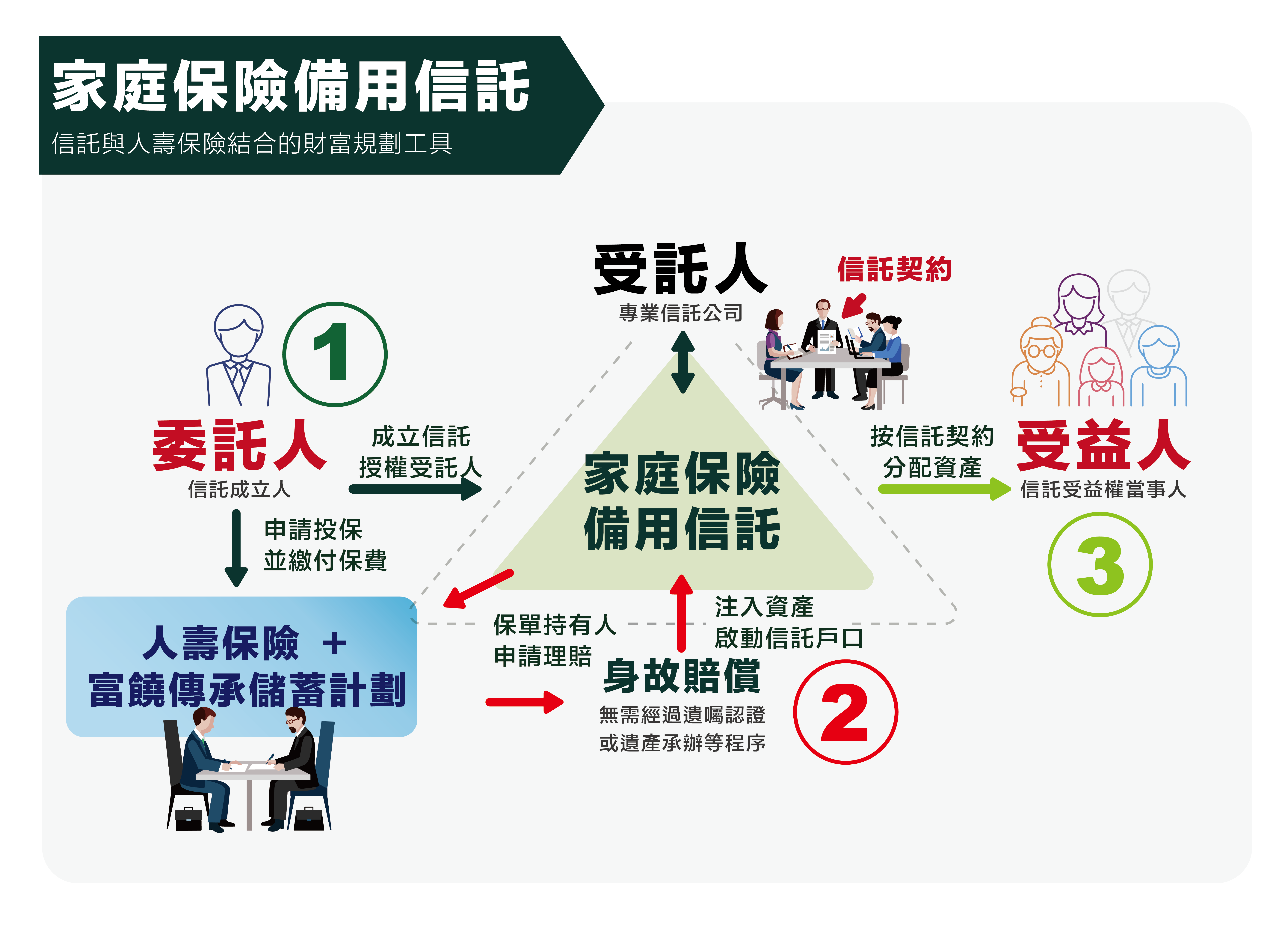 3. 避免整筆人壽及疾病保單的保險賠償金額被挪用或侵佔。